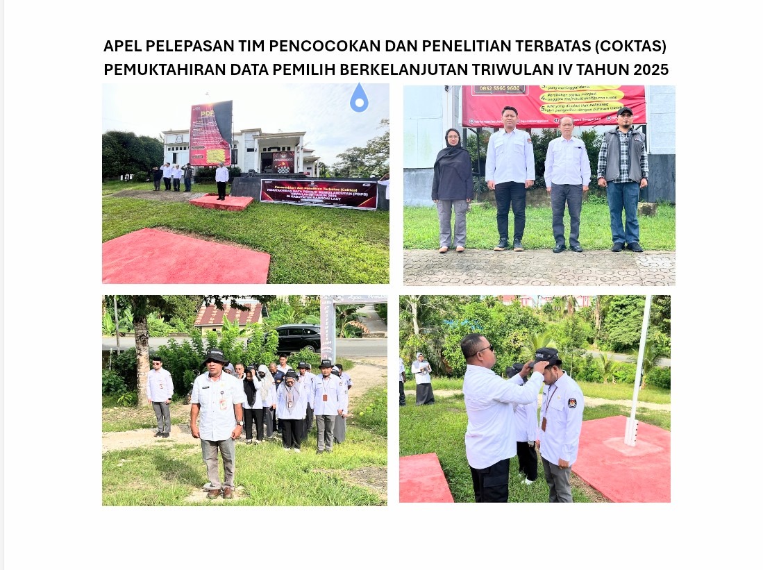 KPU Kabupaten Banggai Laut menggelar apel pelepasan Tim Coktas Serentak Triwulan IV Tahun 2025, bertempat di Halaman Kantor KPU Kabupaten Banggai Laut, pada Senin, 24 November 2025.