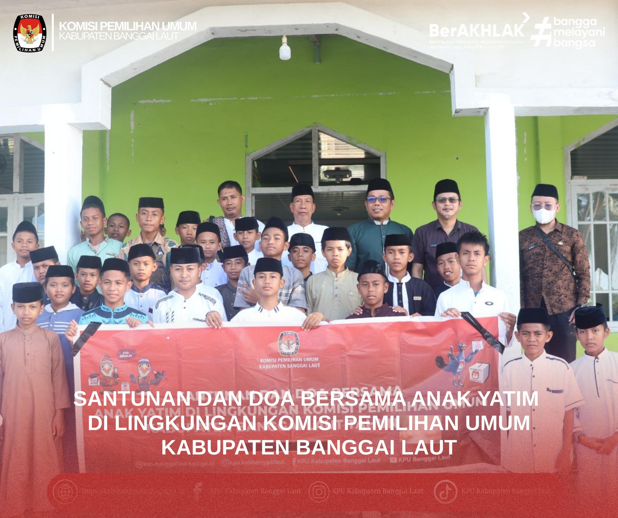 KPU Kabupaten Banggai Laut kembali Menggelar doa bersama dan santunan untuk anak yatim dan piatu. Kegiatan ini sebagai bentuk kasih sayang KPU kepada seluruh anak bangsa dan doa untuk kebaikan dan keselamatan untuk semua.